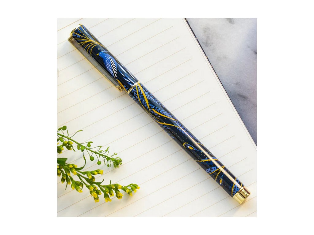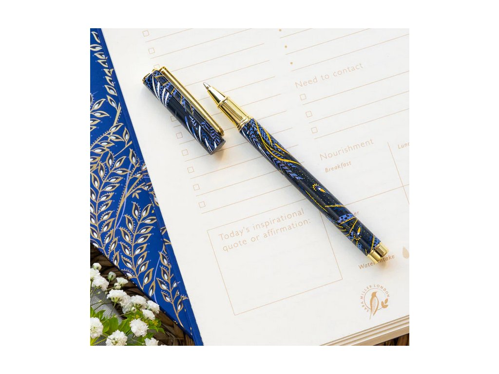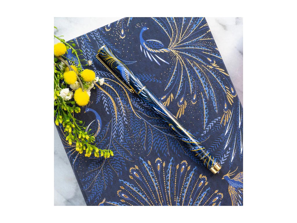 Sara Miller London Anniversary Collection propiska 13,8cm Peacock Parade luxusní designová modro-zlatá