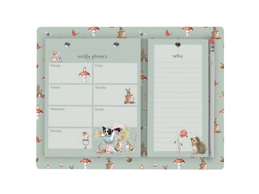 Wrendale týdenní plánovač s magnetem Garden Friends zahradní zvířátka 29,5x23cm zelená
